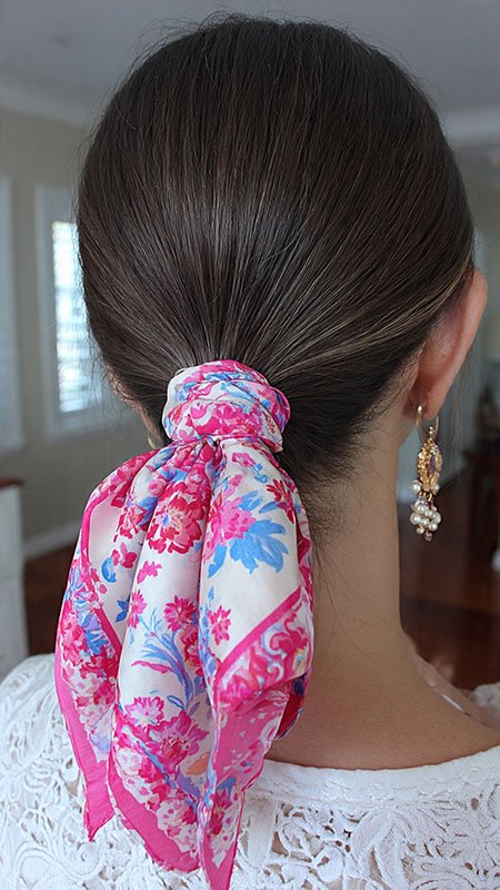Simply tie a colorful scarf around the base of your ponytail for a stylish twist. This look is not only trendy but also practical, as it helps keep hair secure and adds personality.