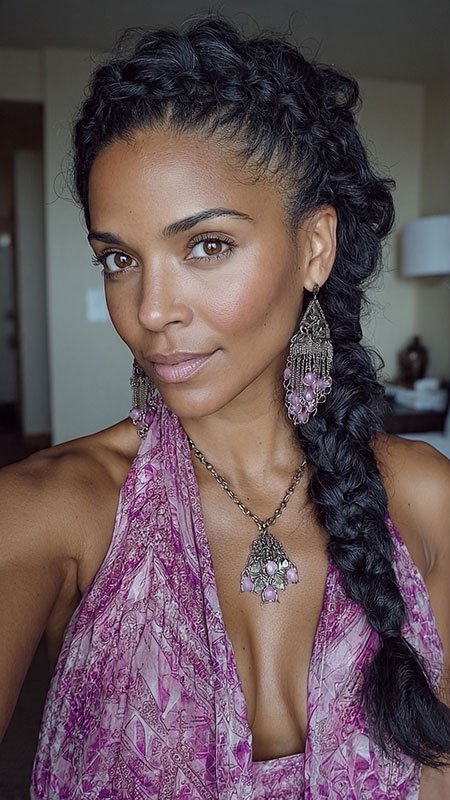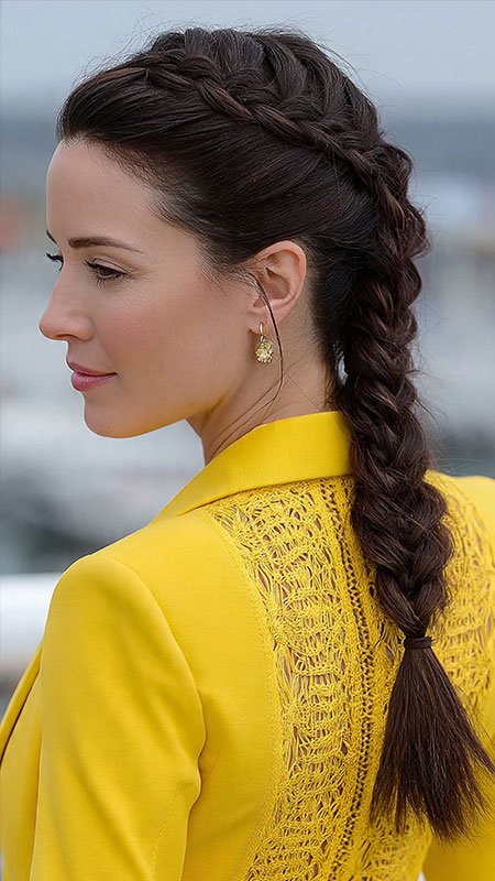 The braided ponytail combines simplicity and elegance, making it a fantastic choice for busy mornings.
