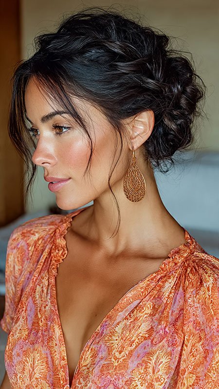 Gather your hair at the nape of your neck, twist it upwards, and secure it with hairpins. This timeless look is perfect for special occasions or when you want to feel sophisticated.